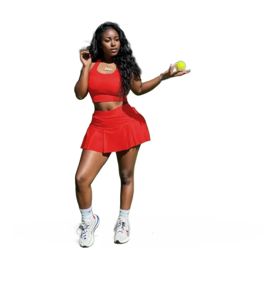 This sleek and versatile sporty set includes a skirt and crop bra, perfect for any active lifestyle. Made with high-quality materials, this set offers maximum comfort and support, allowing you to move freely and confidently. Stay stylish and comfortable during any workout or activity.